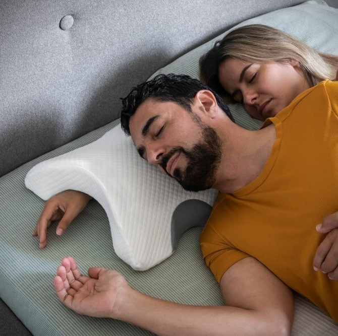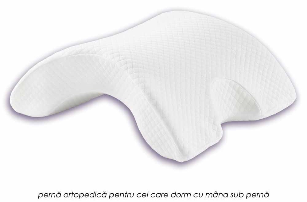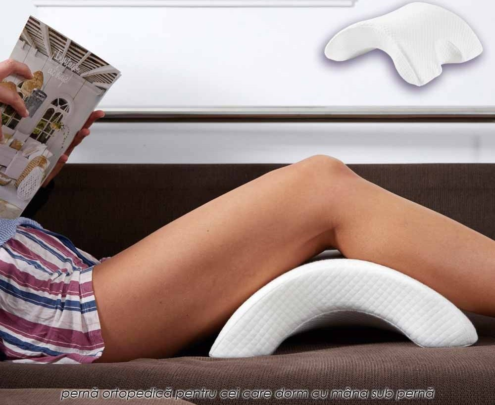 Această pernă ortopedică este special concepută pentru persoanele care dorm cu mâna sub pernă sau pe o parte și se trezesc cu amorțeli, dureri de gât, spate, umeri, șolduri sau genunchi. Designul ergonomic, cu formă curbată, permite poziționarea confortabilă a brațului fără presiune, prevenind amorțirea mâinii și îmbunătățind postura în timpul somnului.
